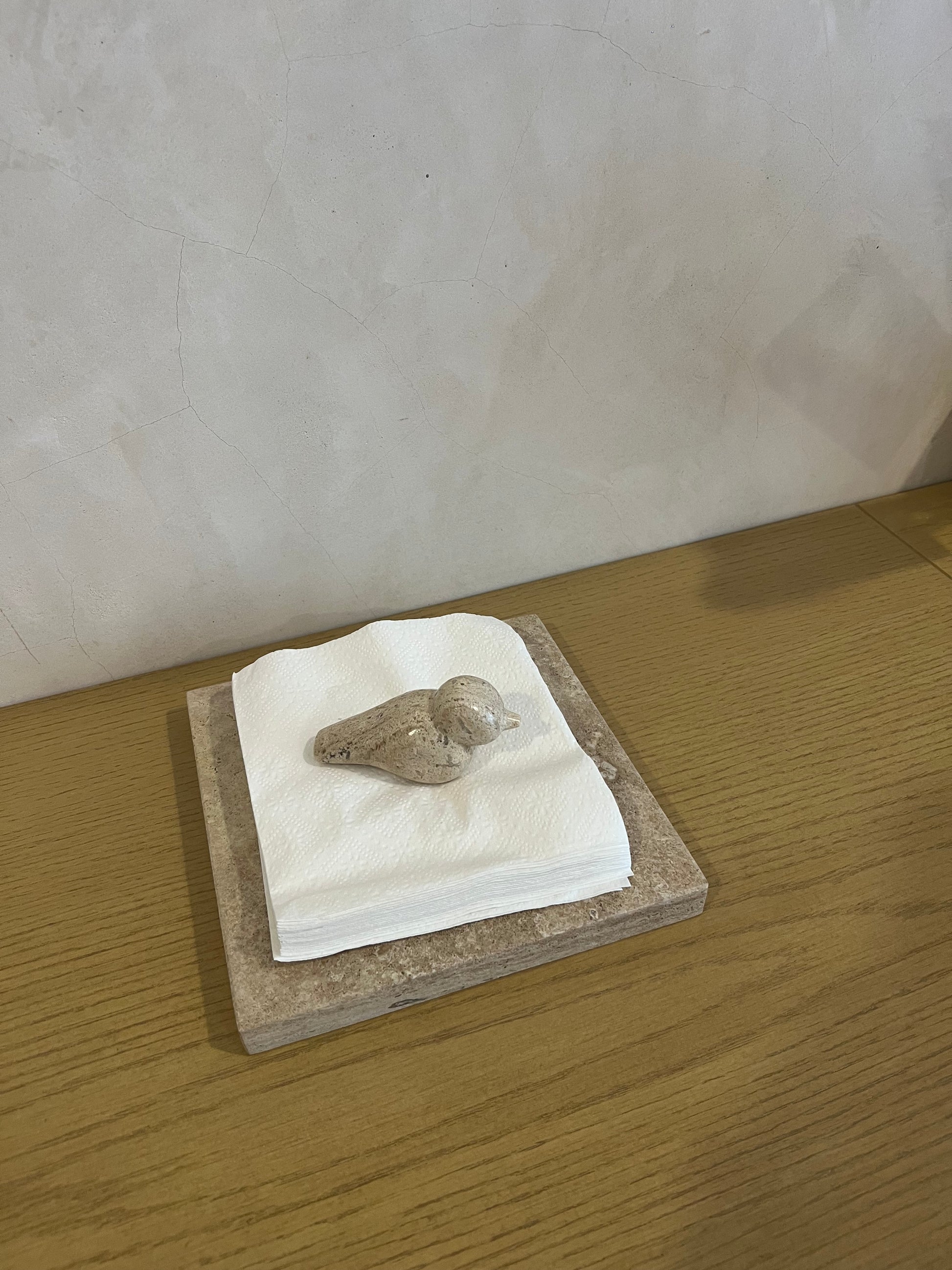 incluye 3 piezas , Base , pisa servilletas pájaro y pino.